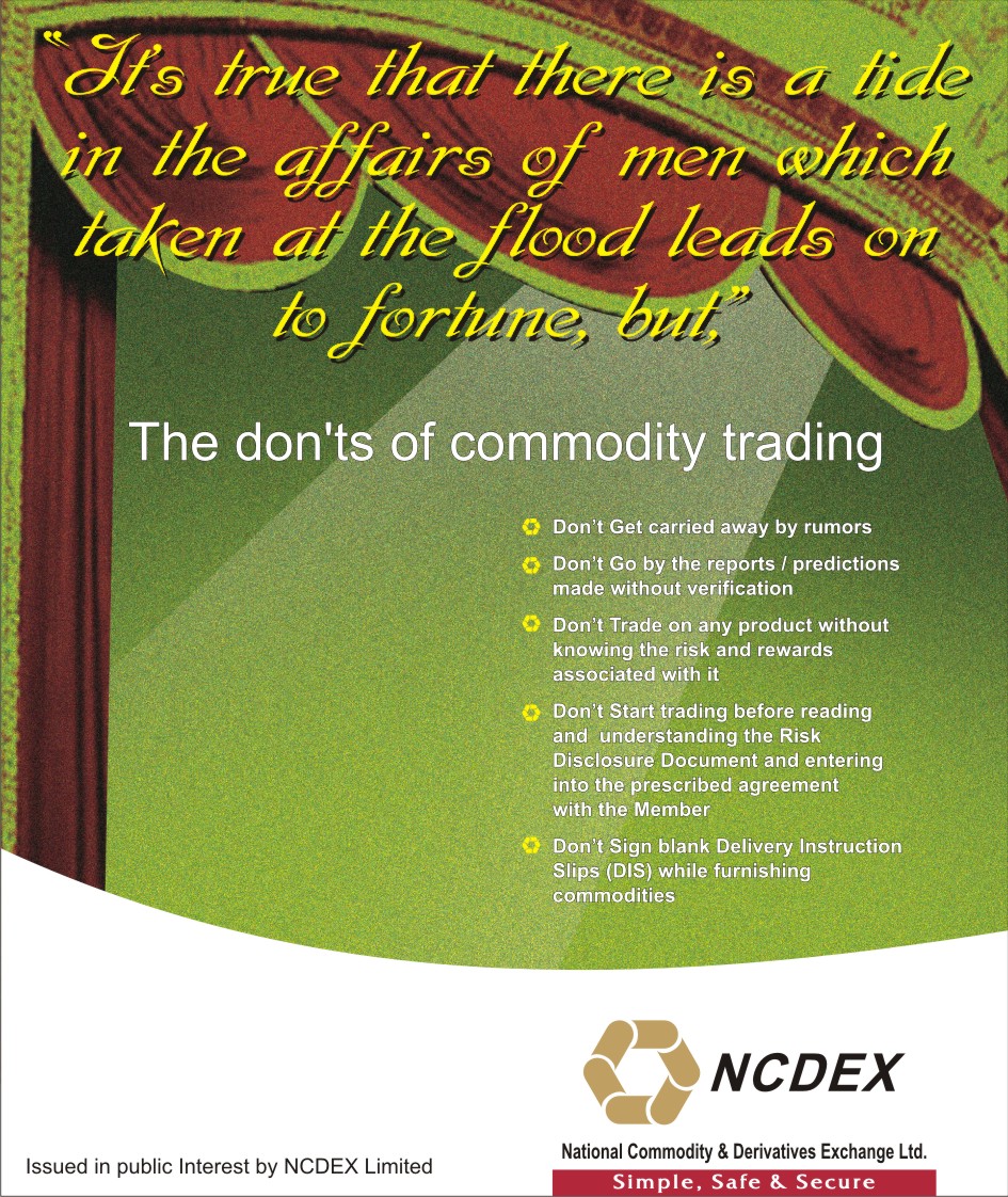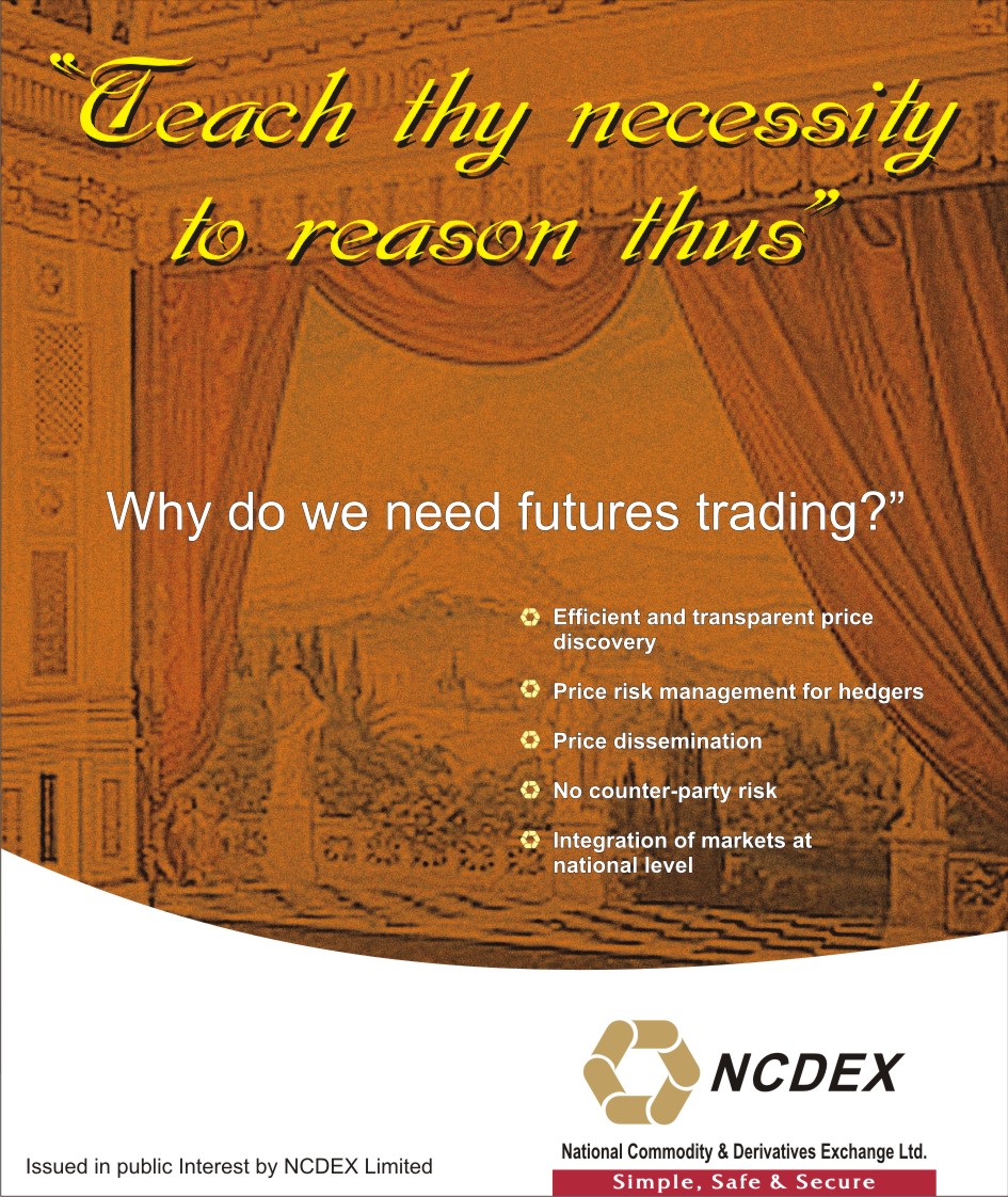 National Commodity & Derivatives Exchange Limited (NCDEX) is a nation-level, technology driven on-line recognised stock exchange with an independent Board of Directors and professional management. It is committed to provide a commodity Exchange platform for market participants to trade in a wide spectrum of commodity derivatives.
